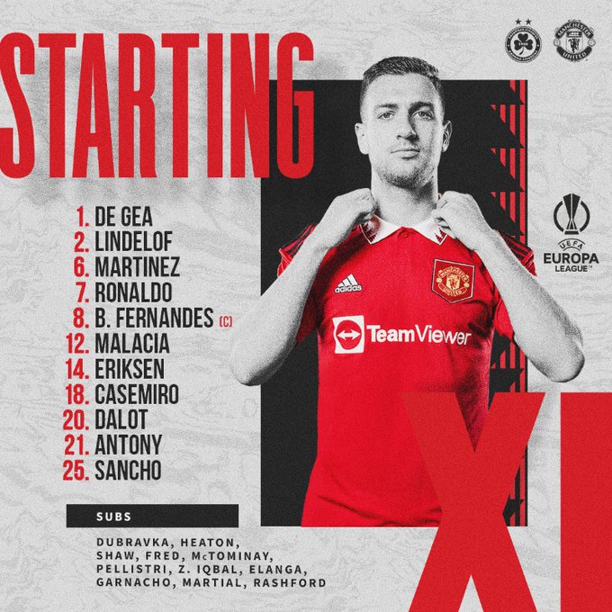 Manchester United vs AC Omonia. Man United XI vs Omonia. Cristiano Ronaldo starts for Man Utd this evening after being left on the bench for Uniteds 6-3 loss to Man City.